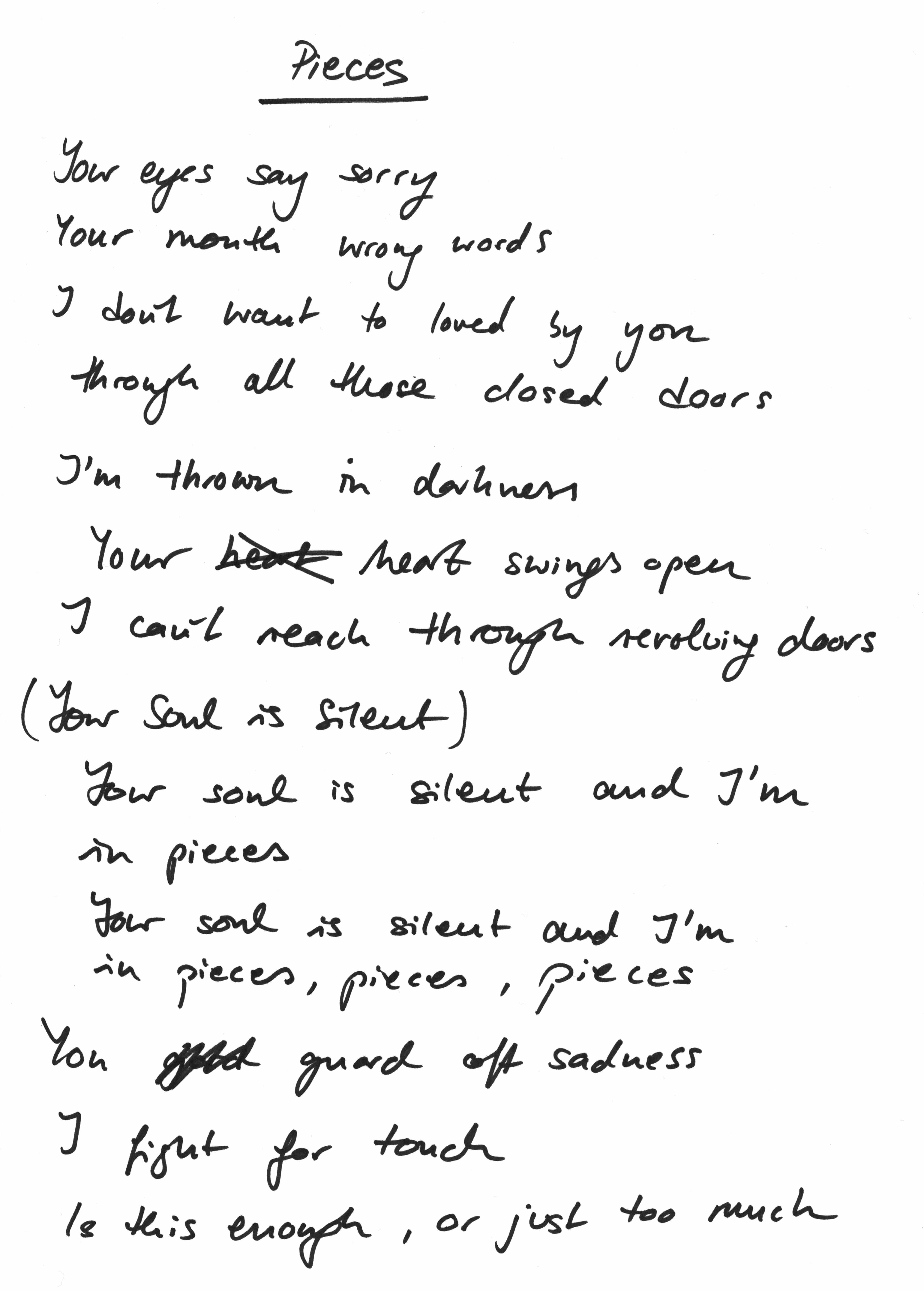 And I found a little something on my computer, a little handwriting of the lyrics! For the lyric videos we always scan handwriting, but this time we stuck to a lovely font ;) But I found this old scan and thought it would be lovely to share. Aren't we all just a little bit in pieces?